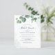 Deze aangepaste eucalyptus bruidsdouche uitnodigingen zijn perfect om te personaliseren en naar uw gast te sturen om de aanstaande bruid te vieren! Het elegante ontwerp heeft een zachte groene blush met groene belettering en eucalyptustakjes. De uitnodigingen zijn aanpasbaar, zodat u ze kunt personaliseren met alle details van de douche. Ze worden ook gedrukt op hoogwaardig papier en enveloppen zijn beschikbaar als een extra aankoop.
