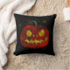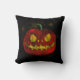 Een kwaadaardige Halloween pompoen in rood, geel en groen, op een zwarte achtergrond