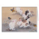 Les lapins sautent sur l'herbe, jouant avec des papillons de danse. Les divers lapins sauvages avec ou sans les taches noires ou brunes sautent à cloche-pied dans les tonalités de sol-brun, montrant l'intimité des animaux et de la nature. Les papillons avec de bonnes couleurs et fleurs bleu ciel forment l'image un paysage plus lumineux et plus vif.