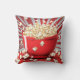 Popcorn die uit een rode kom met rode en witte starburst gestreepte achtergrond exploderen