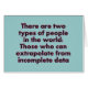 Ceci lit, "là sont deux types de personnes dans le monde : Ceux qui peuvent extrapoler des données inachevées"