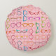 Deze kleurrijke, nerdy eyeglass, een nieuwigheids ontwerpronde kussen heeft een origineel patroon dat bestaat uit brillen in verschillende tinten en stijlen, allemaal op een achtergrond van retro roze gingham. De lijsten van de coole, girale glazen variëren van 50 en 60 seconden kattenoog/hoorn gekneusd en bruine vormen tot rond, vierkant en alles daartussen. Dit leuke, leuke patroon heeft een stijlvolle mode die perfect is voor elke hipster, nerd of fan van fel moderne stijl.