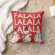 Vier het seizoen met dit feestelijke kussen met moderne typografie met de woorden "fa la la..." en een dansende sneeuwman op een rood kussen. Op de achterkant van het kussen personaliseren met uw familienaam.