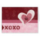Schraapboekstijl Valentijnsdag wenskaart met gezaaide X's en O's, roze lint, papier of doekachtige harten met knoppen en bloempatronen binnen en buiten.