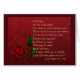 Een ingegraven achtergrond van rode vocht en een rode rode rode rode rode rode rode rode rode rode bloedroos maken dit gedicht waarin gesproken wordt van liefde en passie die vervaagd is of niet meer teruggegeven wordt. Een aanpasbare kaart voor je ex-geliefde of ex-man die je bericht met stijl overbrengt.