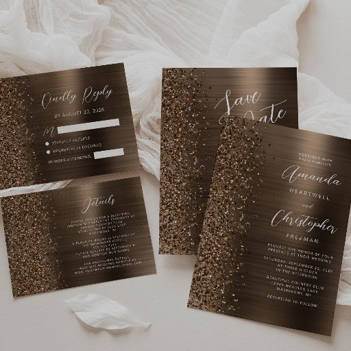 Glam Brushed Metal Glitter Bronze Wedding SuiteConçu par Akhates Designs