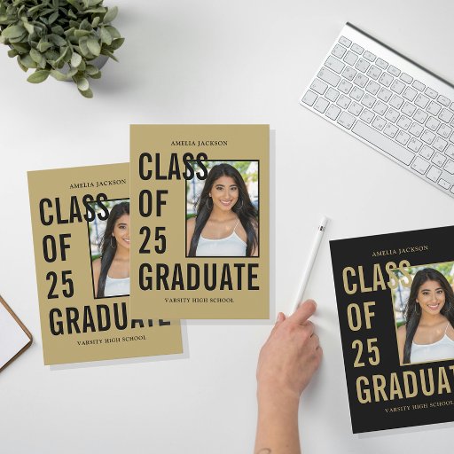 Faire-part Classe Noir & Or De 25 Diplôme Photo & Bio