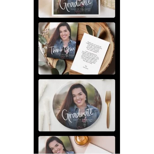 Un faire-part tendance de graduation photo script. Tout le texte à l'avant et à l'arrière de la carte peut être customisé. Remplacez la photo par une photo du diplômé pour créer le faire-part parfait de graduation.
