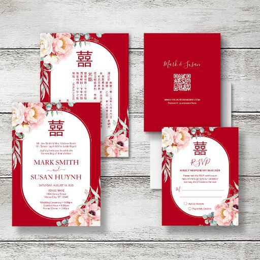 Triilingual Wedding Invitation - Peony on RedConçu par Tracy Ta