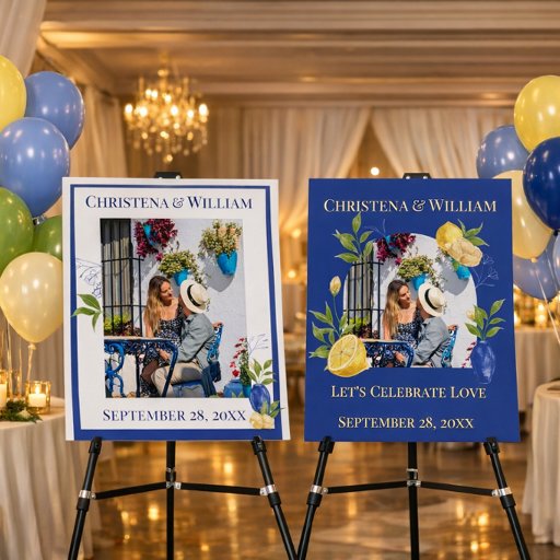 Apportez une touche de charme frais et romantique à votre célébration avec ce faire-part de mariage Blue Lemon Garden. Avec ses citrons jaunes vibrants, sa verdure luxuriante et son fond bleu riche, ce design allie la chaleur méditerranéenne à un style botanique élégant. Une photo circulaire ajoute une touche personnelle, ce qui le rend parfait pour les couples qui souhaitent une annonce moderne et intemporelle. Personnalisez les noms, la date et les détails du lieu pour créer une pièce magnifiquement coordonnée pour votre collection de mariage.