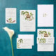 Ce faire-part de mariage est un design de jungle tropicale aux couleurs de la nature. Il dispose de palmiers, de forêts tropicales luxuriantes et de bungalows nichés dans un magnifique cadre tropical paradisiaque.