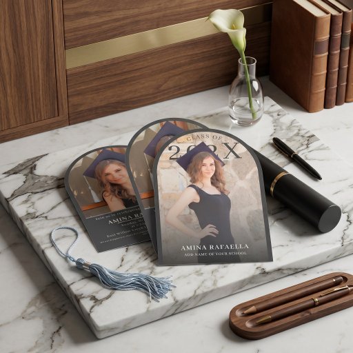 This premium graduation announcement card features a sophisticated minimalist design from the ROULIV "Pure Form" collection, specifically crafted for the modern scholar. The layout is defined by its clean lines and a beautiful balance between a high-resolution personal photo and elegant, hand-lettered black script. By prioritizing white space and refined typography, this design exudes a sense of quiet luxury and professional achievement. You can easily personalize the card by uploading your favorite graduation portrait and customizing the text to include your name, degree, and university details. The monochromatic color palette ensures that your photo remains the focal point while maintaining a timeless and high-end aesthetic. Ideal for high school, university, or doctoral graduations, this announcement serves as a prestigious way to share your milestone with friends and family. The design reflects academic excellence through its understated elegance, making it a perfect keepsake for years to come. Every element is carefully curated to ensure a professional finish on premium cardstock.