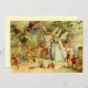kleurenillustratie van Vaak en boswezens die samen door de bossen lopen. Een kleine fee blaast bloemtrompet terwijl hij voor de prins en het prinsesfeeënpaar loopt.
