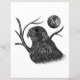 Zwart-wit kunstwerk van een peregrine valk met volle maan en boomtakken. Gebruik de tekst sjabloon om een initiaal of een monogram aan de maan toe te voegen. ♡ Idyllfire