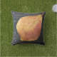 Het afbeelding op dit 16" Sierkussen is een originele foto van ZoeSPEAK van een zeeen druivenblad, gevallen van een struik op de houten planken van een dek, onderweg geholpen door een middagdouche. De korrel van het hout glinstert in de nattigheid en de nagels schitteren als accenttekens. De gele en oranje kleuren van het blad vallen op tegen de donkere achtergrond, geaccentueerd door een druppel aquaverf.