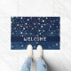 Mooie nachtelijke donkerblauwe hemelachtergrond met vallende zilveren sterren. Aanpassen met naam of ander speciaal bericht