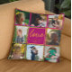 Deze kic en kleurrijk werpen kussen eigenschappen een fotonet met acht van uw persoonlijke foto's en moderne manuscripttypografie die "liefde"op de voor en rug zegt. Een kleurrijk en stijlvol geschenk voor je moeder, echtgenoot of familielid wanneer je ze wilt laten weten hoeveel ze van je houden.