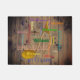 Rustische, monogrammed decor gave voor muzikanten en muzikale liefhebbers - Gepersonaliseerde, noodlijdende houten look doormat heeft gepersonaliseerde, familiemonogram woordwolk in heldere, veelkleurige letters en vele stijlen. Met een gouden muzieknoot op de achtergrond. Tegen een bruin patroon van roestachtige, in nood verkerende schuur- en plankbossen. Fun familiecadeau of cadeau voor het huishouden voor de muziekfamilie.