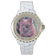 roze bloesems en grillige snorharen sieren dit purfecte uurwerk.