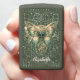 Gepersonaliseerde aansteker beschikt over mooie AI gegenereerde digitale kunst ontwerp van een Steampunk vlinder in groen op een wijnstokken achtergrond. Naam of monogram toevoegen