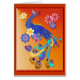 Wilde en gekke pauw omringd door wilde en gekke bloemen. Kleuren....en meer kleuren.