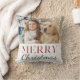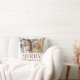 Festive kussen zijn voorzien van een kleurrijk kersttype met Merry op een gedempte botanische afdruk, samen met uw favoriete feestfoto!
