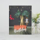 Een magisch surrealistisch verjaardagsgroet met dank aan de sterrentuin en een bruisend meisje in zwaaien...de overmaatse rode vlinder, de gouden boomstam en de zalm en witte neon "Happy Birthday"-tekst.