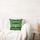 Het originele kunstwerk van ZoeSPEAK op dit Sierkussen is ontworpen in de stijl van een koppelingstas, gemaakt van stof met hetzelfde patroon, maar verschillende texturen, een glanzend glad en een meer als grof linnen. De flap van de portemonnee is versierd met roze marmeren stenen in goud. De stof is getextureerd geel groen, met een avondblauwe achtergrond. Het ontwerp is gemaakt van een originele foto van de bladeren van een kerstpalm.