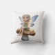 Gooi een kussen met een schattige fee met delicate vleugels en gouden haar zittend bovenop een grote, gevlekte paddenstoel. Ze draagt een groene jurk en gouden schoenen, die een magische en grillige uitstraling hebben.
