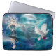 Etherale blauwe hemel - volle maan die door de wolken stroomt - Mooie blonde Moon Goddess, Sky Siren wijst naar haar mooie Witte duif met één roos