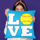 Een super schattige en klantgerichte gooi kussen voor de spelers en de ventilatoren van de flitssoftbal, met LOVE gedrukt in gewaagde witte teksten en een flitssoftball grafisch in plaats van O. U kunt de achterhoede kleur verlaten zoals is, of [Aanpassen] klikken en het hulpmiddel van de kleurenplukker gebruiken om het even welke achtergrondkleur te selecteren u wilt. Maakt een geweldige slaapkamerdecoratie voor softballiefhebbers!