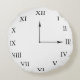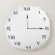 Een ontwerp gemaakt om een wijzerplaat met zwarte Romeinse cijfers tegen een witte achtergrond na te bootsen, compleet met een zwarte uurwijzer en een zwarte minutenwijzer op een leuk werpkussen.