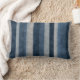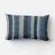 De dunne lumbale kussen hebben een faux corduroy getextureerd blauw stripe patroon.