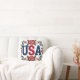 Show je patriottische trots met dit kussen met een faux geborduurd "USA" ontwerp met rode, witte en blauwe bloemen.