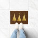 Doormat in een vereenvoudigde moderne vorm, met een klassiek kerstboommotief, een gouden folieachtige gradiënt/brocade in een antiek bloemmapontwerp met een chocoladebruine achtergrond