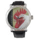 Mannen Fearless Wit Rooster Horloge met zwart lederen Band.