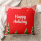 Heldere rode vakantie-thema achtergrond met versierde kerstbomen op besneeuwde grond, het creëren van een feestelijke en vrolijke sfeer.