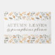 Op maat ontworpen deurmat voor het vakantieseizoen met "Herfstbladeren en pompoenen alstublieft" typografie ontwerp op waterverf herfstbladeren patroon.