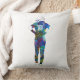 Decorative throw pillow featuring a colorful watercolor silhouette of a female softball player. The vivid artistic style brings energy and personality to any room or sports-themed space.