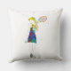 Decorative pillow featuring a vivid watercolor silhouette of a tennis player. Adds a splash of energy and modern athletic flair to any space.
