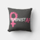 Show uw steun voor de grondrechten van vrouwen met dit ontwerp van de gooikussens dat een penseelroze vrouw symbool met de tekst "feministisch af" op de zwarte achtergrond bevat