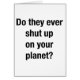 Est-ce qu'ils se taisent jamais sur votre planète ? Fait un grand cadeau à celui qui est dans la foule qui suce l'oxygène de la pièce ! Customisez pour un cadeau ou un salut.