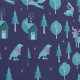 This whimsical pattern features a playful winter scene with charming animals, a cozy cabin, and trees. Soft colors and cozy accessories, like hats and scarves, create a warm, festive atmosphere perfect for the season.