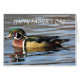Un canard en bois décore cette carte de voeux Happy Fête des pères