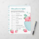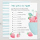 Feuille de papier de jeu de baby shower avec des fraises mignonnes dans une tasse en aquarelle.