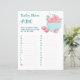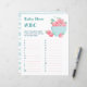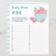 Feuille de jeu de baby shower en papier avec des fraises mignonnes dans un verre dans le style d'esquisse à l'aquarelle.