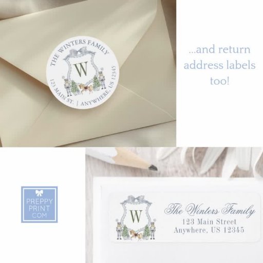 PreppyPrint.com - Ajoutez une touche d'élégance fantaisiste à votre Noël avec la collection Watercolor Nutcracker Monogram Crest. Avec de charmants noix de cou dans les tons bleu doux, cette crête festive est la touche parfaite pour votre élégante saison de vacances. Transférez aussi ce design sur les produits de votre choix ! Veuillez visiter mon magasin de créateurs, PreppyPrint.com, pour la coordination des articles.