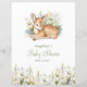 Papier Feuille de papier de jeu de baby shower avec adorable aquarelle fawn niché parmi les fleurs.
