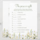 Feuille de papier du jeu de baby shower.