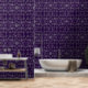 Mettez à jour l'apparence de vos murs avec du papier peint. Ce papier peint vinyle texturé présente une impression de feuilles grises foncées et claires sur un fond violet. Ce motif de feuille abstrait complètera une maison ou un bureau moderne.